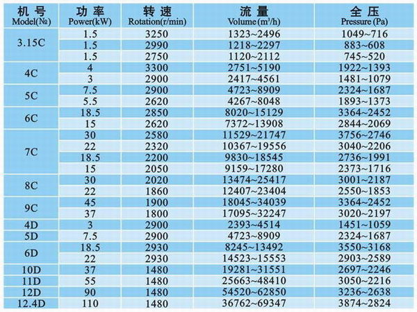 (1)引風機制成單吸入,機號有№4、5、6、8、9、12、12.4七種。